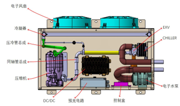1.5/2kW隔离DCDC,5.5/7.5kW变频器已成功适配海立、松下、美芝、格力等品牌的多款压缩机,控制器具备过压、过流、过温、短路、过载等多种保护功能,发生故障时可快速保护并告警,保护整车安全。通过多年市场实际运行数据,不断优化逻辑和控制算法,协调控制DCDC和变频器,联动水泵和风扇,精准快速的控制输出达到电池降温效果,且支持PTC加热器控制,一个控制器解决机组所有电动部件的控制,无须外加模块,减少机组开发困难。目前已支持800V以上的高电压电池平台。